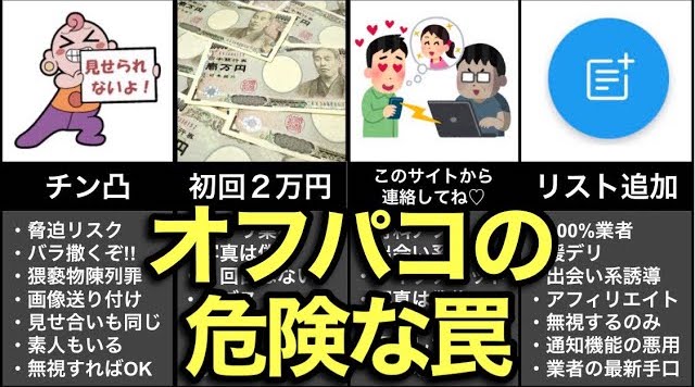 それでは、こうしたオフパコを装う詐欺業者・サクラを、どのように見極めれば良いのでしょうか。